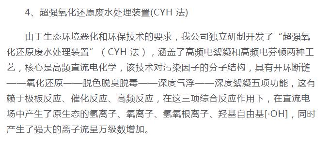超強氧化還原廢水處理裝置(CYH法)處理各種有機(jī)廢水、各種重金屬廢水